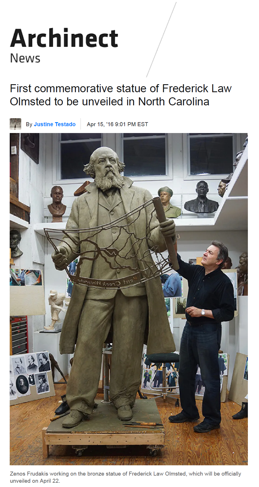 First commemorative statue of Frederick Law Olmsted to be unveiled in North Carolina Archinect News