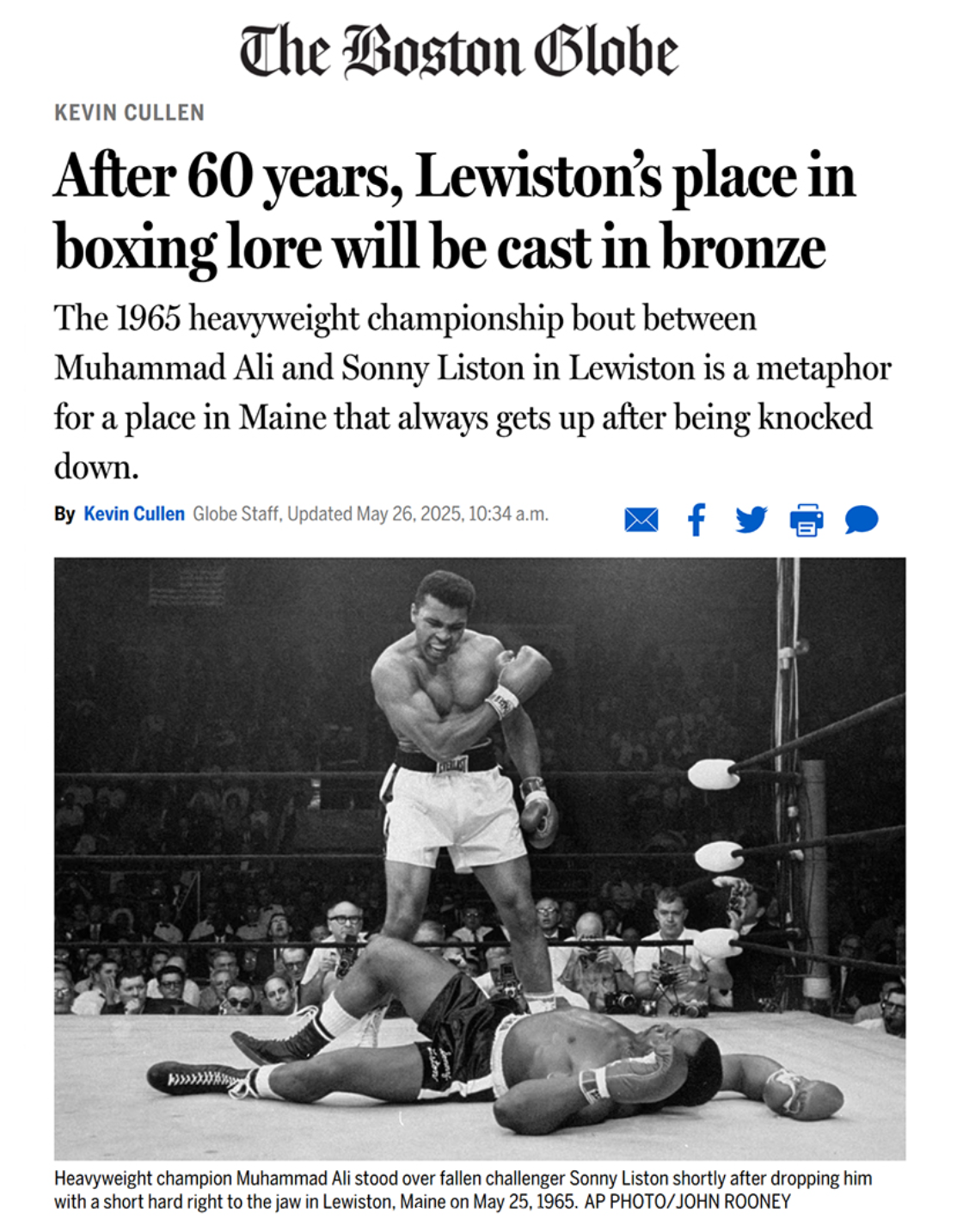 2025 — The 1965 heavyweight championship bout between Muhammad Ali and Sonny Liston in Lewiston is a metaphor for a place in Maine that always gets up after being knocked down.